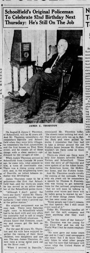 The police also were housed in the fire station and this Bee article from August 4, 1942 highlights one long-standing policeman in the village.