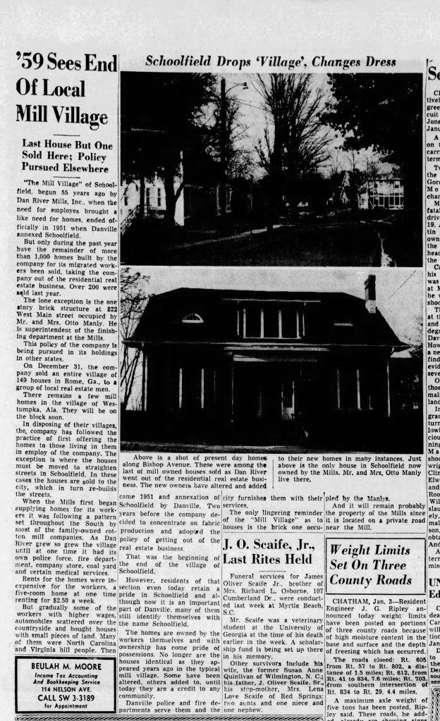 “’59 Sees End of Local Mill Village,” The Danville Register, January 4, 1959.
